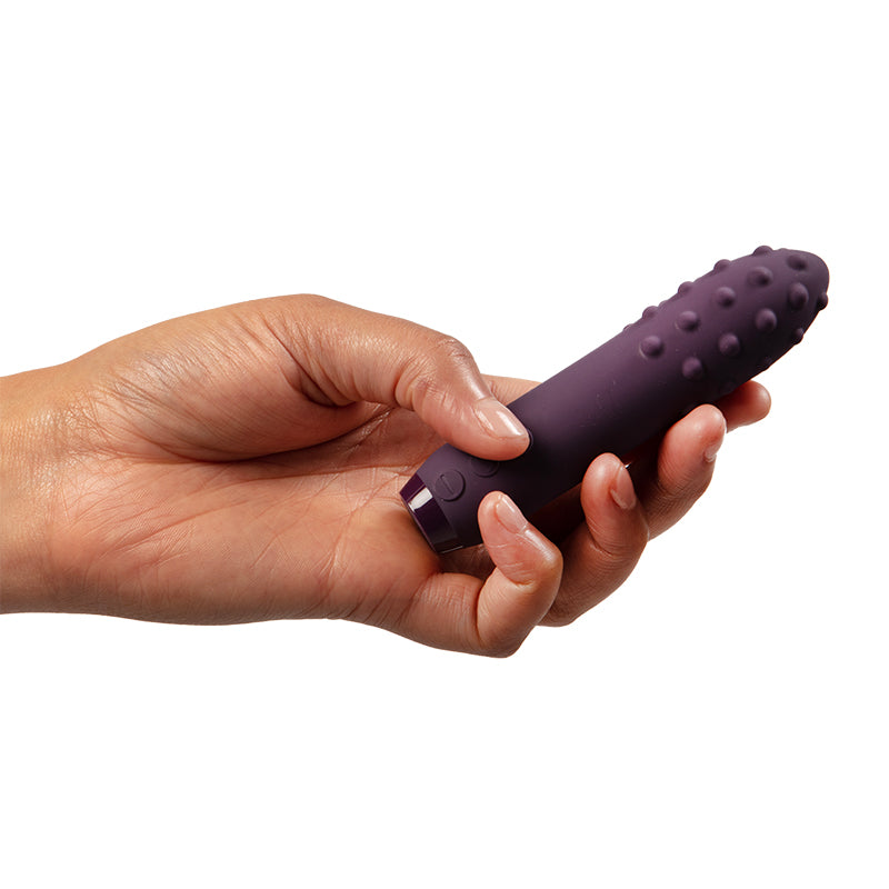 Meet Duet, a multi-surfaced bullet vibrator with small, rounded, graduated pleasure points on one side and a silky smooth surface on the other to give multi-sensations across the body. Use Duet to stimulate external pleasure points such as the clitoris, nipples, and thigh. And if you want to explore further, Duet is the perfect partner for gentle, shallow penetration play with its deeply rich vibrations. With its silky soft, body safe medical grade silicone, Duet feels great to touch and even better to experience. Let Je Joue's famous rumbly motors pamper your body deeper, giving you a richer, more pleasurable intimate experience.