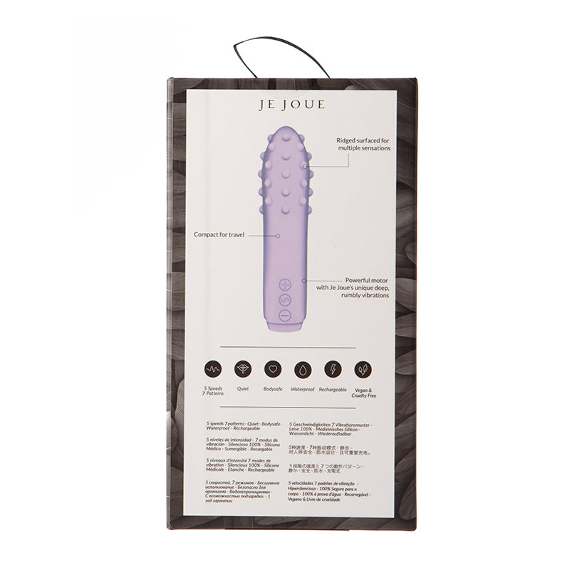 Meet Duet, a multi-surfaced bullet vibrator with small, rounded, graduated pleasure points on one side and a silky smooth surface on the other to give multi-sensations across the body. Use Duet to stimulate external pleasure points such as the clitoris, nipples, and thigh. And if you want to explore further, Duet is the perfect partner for gentle, shallow penetration play with its deeply rich vibrations. With its silky soft, body safe medical grade silicone, Duet feels great to touch and even better to experience. Let Je Joue's famous rumbly motors pamper your body deeper, giving you a richer, more pleasurable intimate experience.