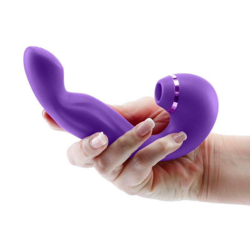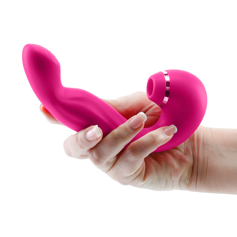 Symphony by INYA - A multifunctional contoured vibrator featuring three motors providing powerful g spot vibrations while sensually stimulating the clitoris with exciting air pulse technology. Water resistant and Rechargeable. Suitable with all lubricants. Made of platinum grade silicone.