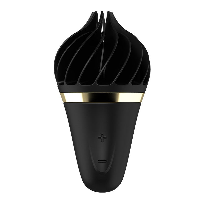 The Satisfyer Sweet Treat is probably the sweetest of all clit vibrators - because this ice cream cone has it all: It brings your clitoris to super sweet climaxes like never before with the rotating fins. Pleasantly soft, skin-friendly silicone nestles around your pleasure pearl and takes care of your sexual wellness with powerful devotion, no matter where you are. The seductive cone fits comfortably in your hand - so you can easily control the 10 exciting vibration levels, consisting of 4 rotation rhythms and 3 right and left speeds each, using the +/- buttons.