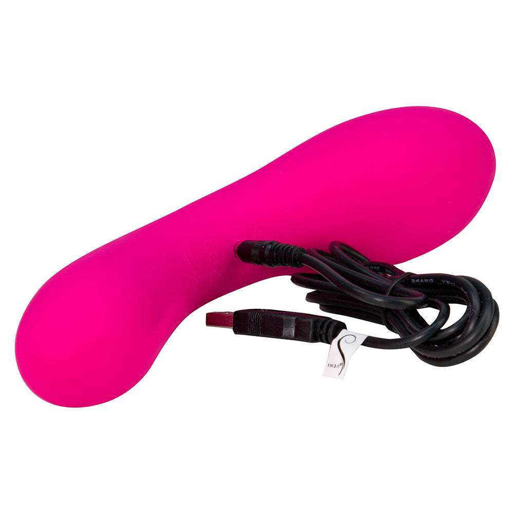 The most powerful G-Spot Vibrator GQ Magazine (https://www.gq.com/story/best-g-spot-vibrators) We didn't say it, but we always knew it. The Swan® Wand is the most powerful model in the already ground-shaking line of award-winning Swan® products. This dual-vibrating wand is perfect for soothing sore muscles or some intense fun for the naughty and adventurous! Not only is it elegant in design, but it delivers unbelievably powerful vibrations to give you the most intense toe-curling orgasms ever! The Swan Wand features two power-packed PowerBullet® motors, one in each end, that are easily controlled individually by a single button each. Play with one end or get ready for one of your most powerful play sessions by using both simultaneously. Each end features 7 functions: 3 speeds and 4 patterns. Cycle through them with a quick press of the button or press-and-hold to enter incremental speed mode and feel the intense vibrations steadily rise. Made with premium silicone, this wand is virtually seamless and super smooth so it's not only safe to use against your most sensitive areas, it also feels phenomenal! The Swan® Wand is certified waterproof so playtime isn't restricted to dry land. Take your wand into the shower, bath, or hot tub and add a splash of fun to the knee-shaking orgasms this toy will help you achieve. You can also take this powerful pleasure pal on the road with you as the convenient travel lock means you won't have any surprise rumbles interrupting your trip. - Dual Vibrating Wand - G-Spot and Clitoral Stimulation - 7 Vibration Functions in Each End - Award Winning Product Line E.A.N. Awards - Most Powerful G-Spot Vibrator GQ Magazine - Independently Controlled Vibrations - Press and Hold Technology - Premium Body-Safe Silicone - Soft Touch - Phthalate Free - Powered by PowerBullet® - Waterproof - Easy to Clean - Travel Lock - USB Rechargeable (Cord Included) - Charge Time: 4 Hours - Up to 8.5 hours of Playtime - 1-Year Limited Warranty - Length: 9 in. - Width: 2.5 in. - Diameter: 6 in (Narrow End) / 2 in. (Wide End)