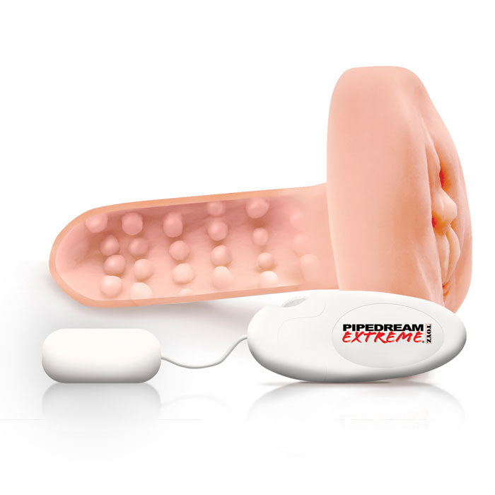 Show your team spirit and give this coed cutie a lesson in hardcore pussy fucking! This little sorority slut may be new to the game, but she's well versed in the classic art of cock massaging! Her warm Fanta Flesh fuckhole is lined with rows of bumpy love nodules carefully placed to make you explode. The lifelike lips wrap around every inch of your cock and cling to you pleasure rod like a real wet snatch! Place the vibrating bullet in the sleeve and this pocket pussy graduates to magna cum harder! The soft, lifelike masturbator is lined with hundreds of bumpy love nodules that are guaranteed to make you explode!