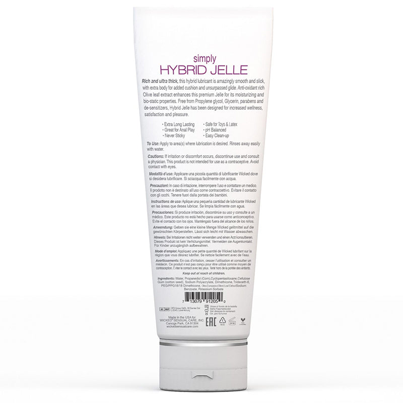 Rich and ultra-thick, simply Hybrid Jelle is a clean, premium hybrid lubricant that is amazingly smooth and slick, with extra body for added cushion and unsurpassed glide. Antioxidant rich Olive Leaf Extract enhances this formula with its moisturizing and biostatic properties. simply Hybrid Jelle is free of Glycerin, Propylene Glycol, and Parabens. Vegan, cruelty free, and pH balanced, simply Hybrid Jelle is a perfectly blended hybrid formula, providing added glide and pleasure a great choice for all types play.