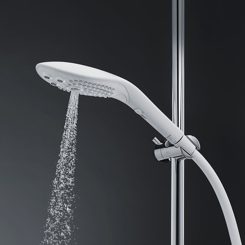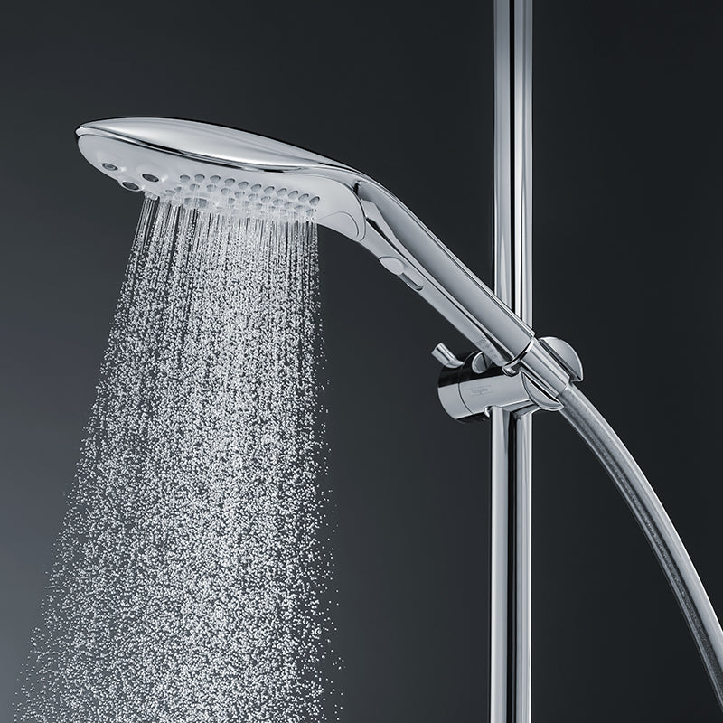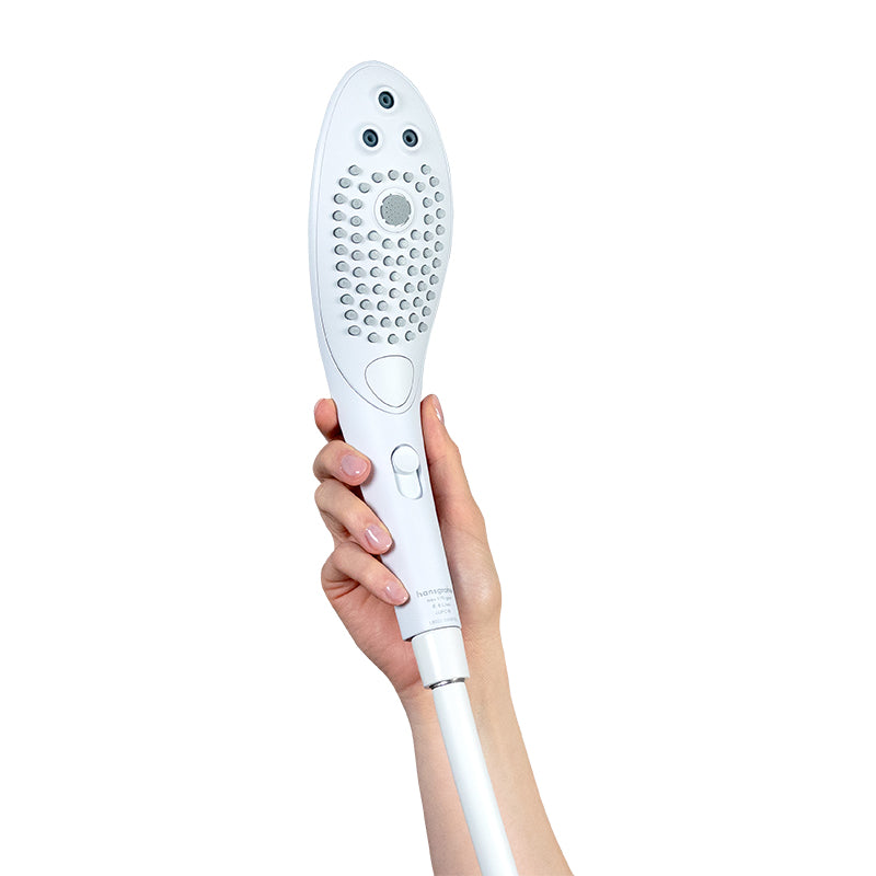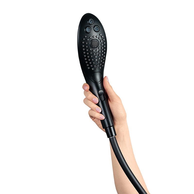 Shower head designed for comfortable one-handed control foreffortless water massage stimulation.